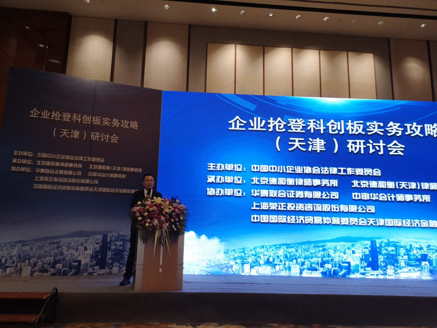 2019年3月29日,由中国中小企业协会法律工作委员会主办,北京德和衡律师事务所、 北京德和衡(天津)律师事务所承办,贸仲委天津仲裁中心等联合协办的企业抢登科创板实务攻略(天津)研讨会在天津香格里拉大酒店成功举办。
